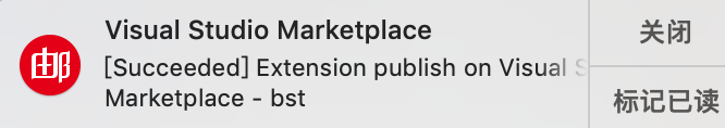 至此,全流程已走通,几分钟后,邮件通知发布成功,便可在vscode插件安装区下载 marketplace.visualstudio.com/items?itemN…