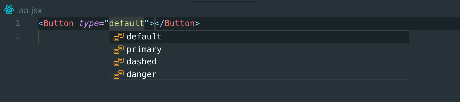 "<Button type=\"${1|default,primary,dashed,danger|}\">$2</Button>",