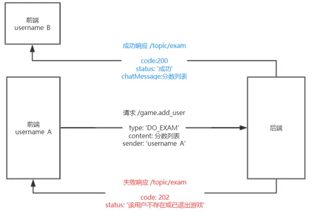 - 大厅中用户可以互相选择,一旦某用户选择了另一位用户,将触发开始游戏,双方进入答题模式。