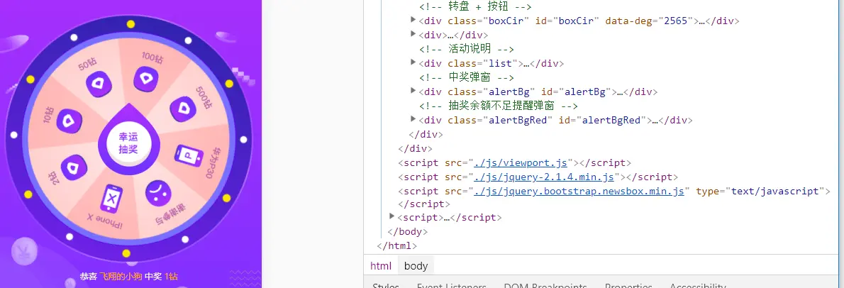 - 中奖提示消息,引入jquery.bootstrap.newsbox.min.js 库