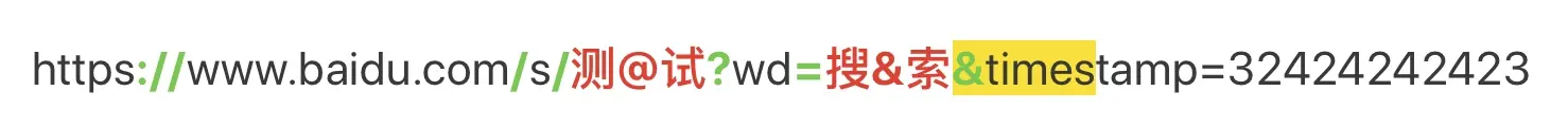2、因 搜&索 含有中文和保留字符& ,& 会影响参数解析。需要先搜&索 编码为 %e6%90%9c%26%e7%b4%a2 ,再拼接到wd=%e6%90%9c%26%e7%b4%a2×tamp=32424242423