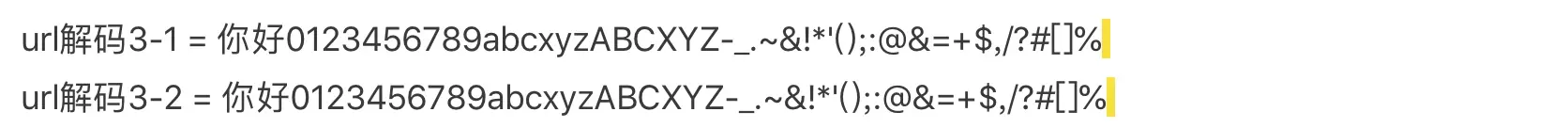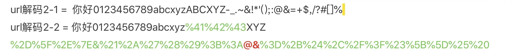 解码2-2强制不解码自定义字符集 ABC-_~.!*'();:@&=+ $,/?%#[],但依然有两个字符@ &比较特殊,排除在解码之外,具体暂不明原因。