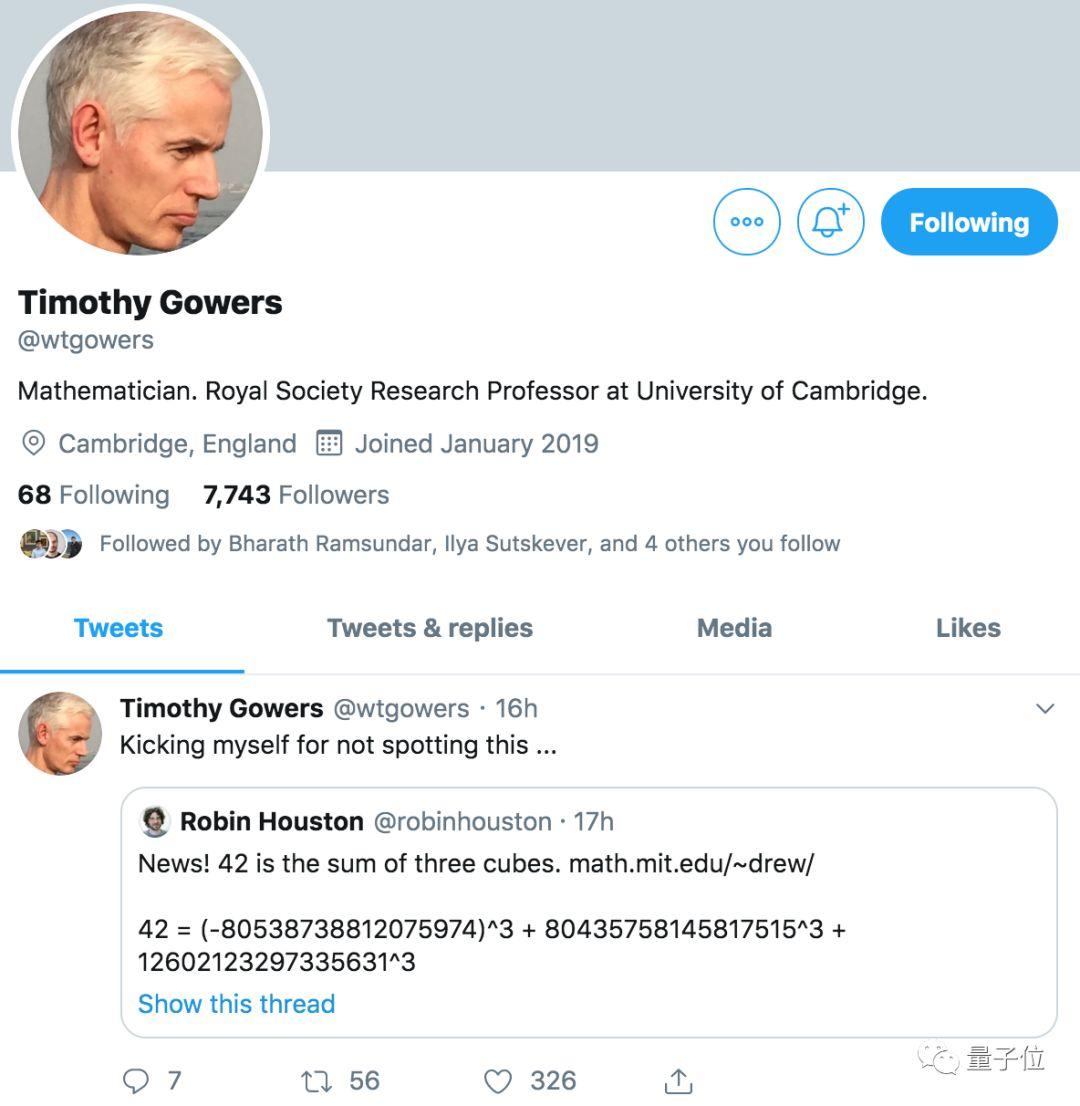 也引起了一种数学大牛和爱好者的关注,菲尔兹奖得主、剑桥大学教授Timothy Gowers还转推“祝贺”了这一成就。