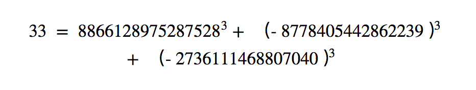 人类第一次将33写成了3个整数的立方和: