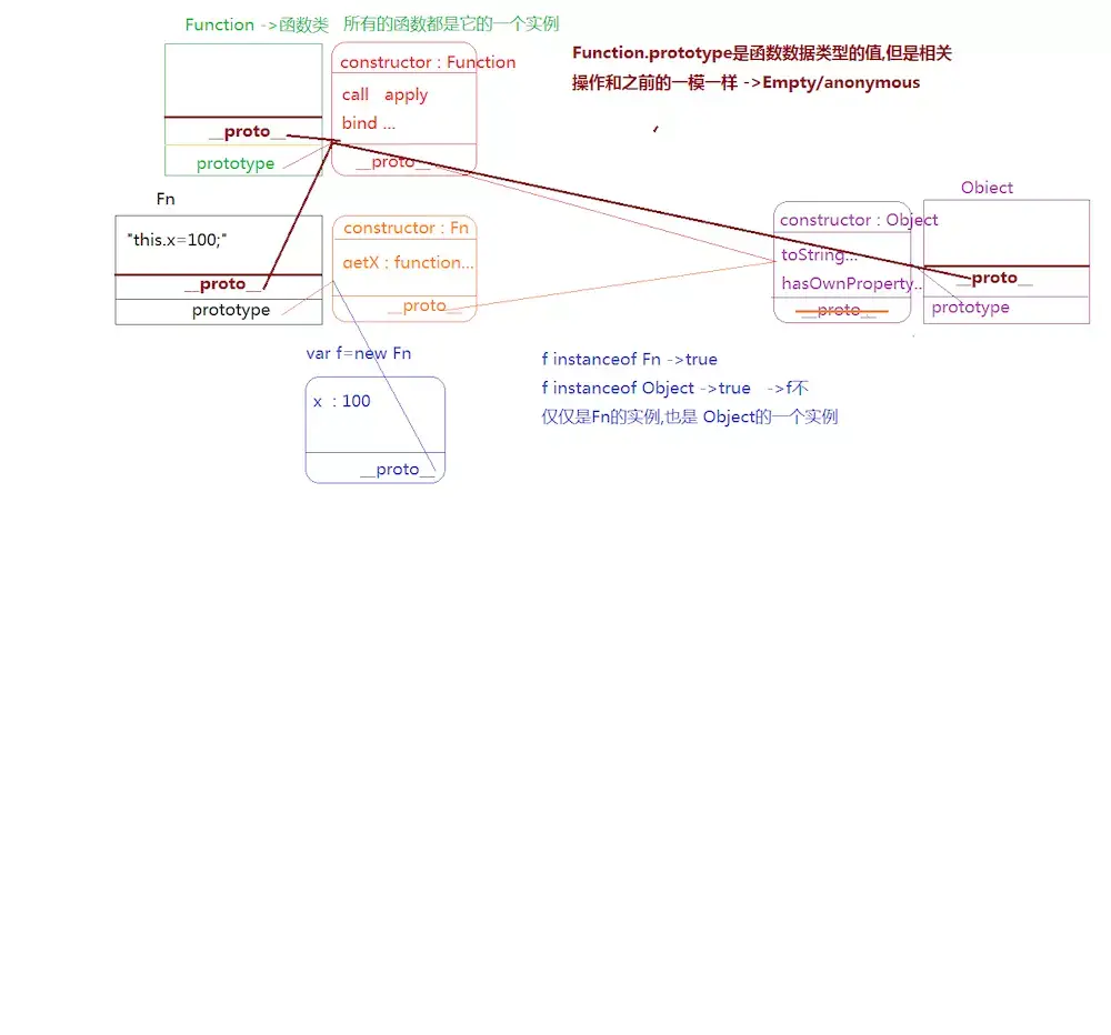 -> "普通对象": 和var obj = {}; 中的obj一样,就是一个普通的对象,它作为对象可以有一些自己的私有属性,也可以通过proto找到Function.prototype。