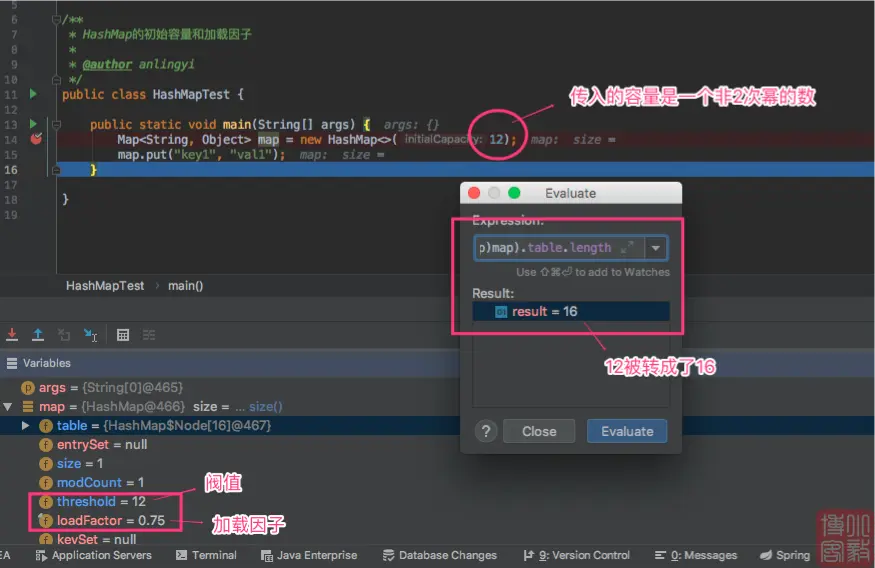 创建一个初始容量为12(非2次幂数)的 HashMap,并添加1个值