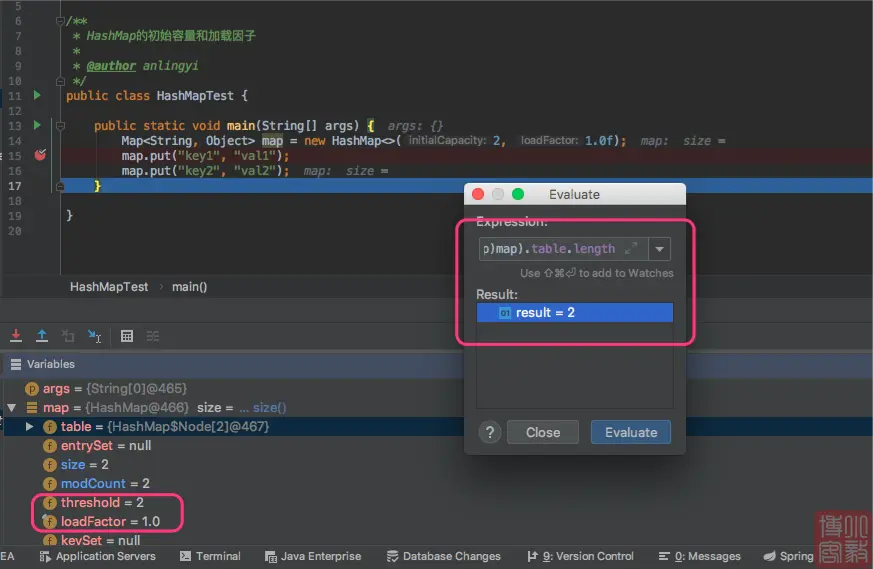 创建一个初始容量为2的 HashMap,并添加2个值