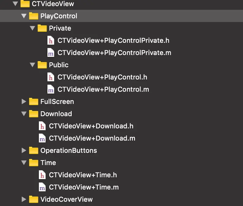 将类的实现分散到多个不同的文件或多个不同的框架中。如下:不同的功能模块用不同的Category处理