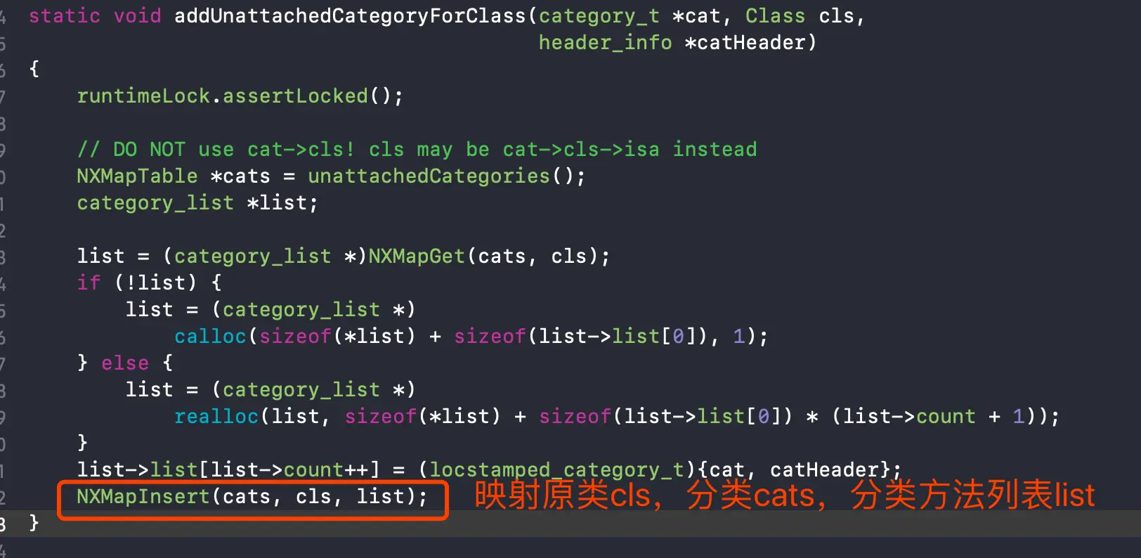 - 可以看到这里是通过获取到要添加的分类方法列表和它的大小,然后拷贝到原有的方法列表里