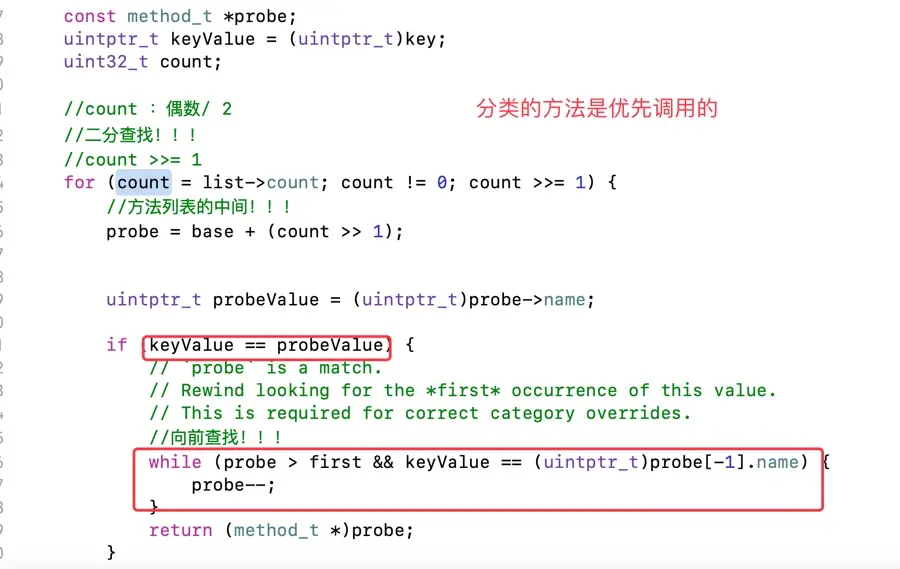 - 探索到这里,已经明白为什么分类的方法能覆盖原类的方法了,它只是比原类的方法先调用而已,实际上并没有覆盖这个方法。也明白为什么多个分类同名方法会执行最后编译的分类里的方法里,也是调用顺序的问题。