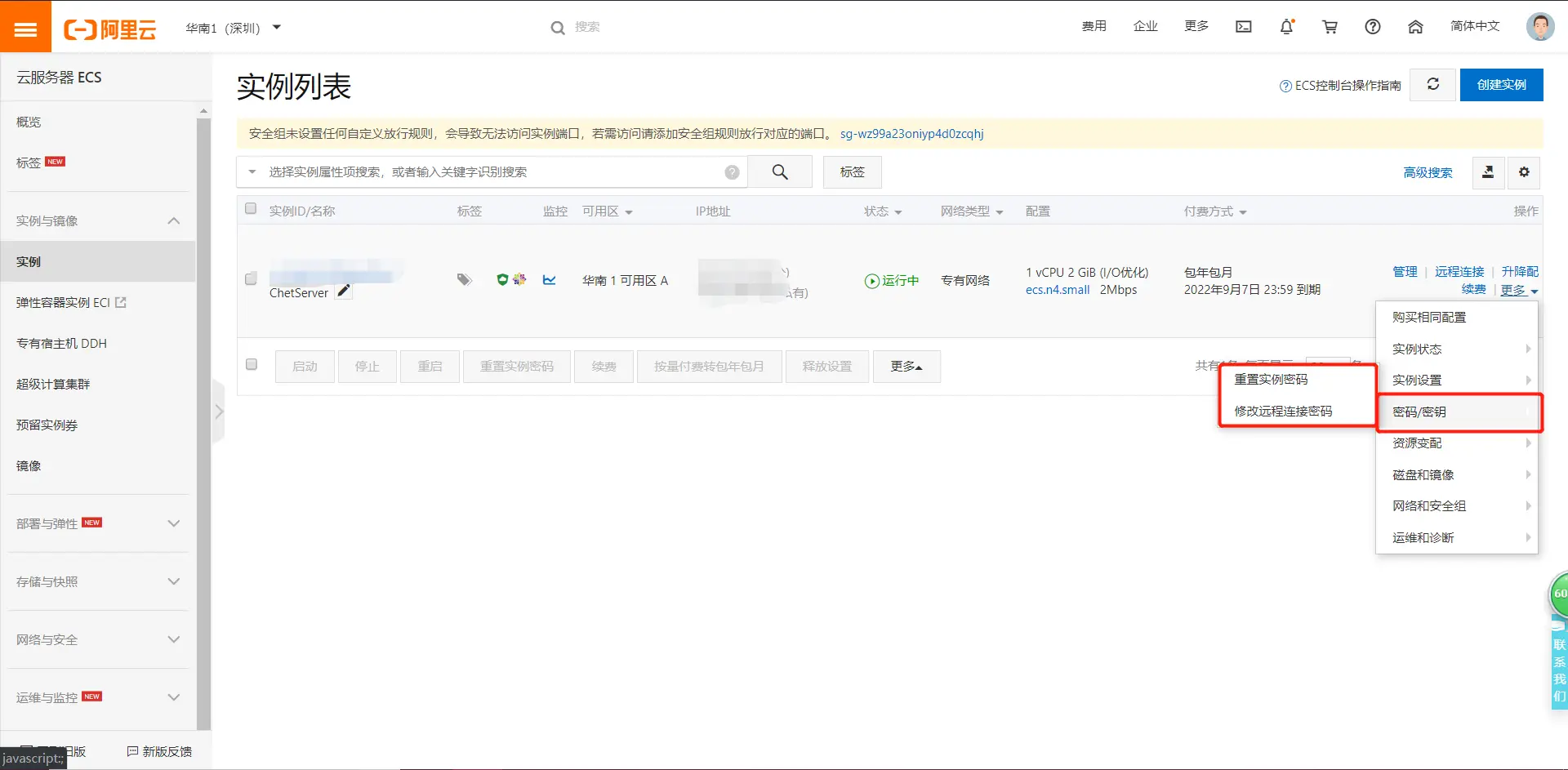 下单成功后,进入阿里云的控制台就可以看到现在的配置了