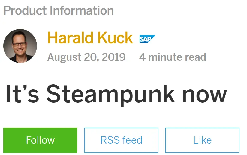 SAP Cloud Platform ABAP Environment的诞生,我们固然应该感谢SAP云平台和ABAP的相关工作人员。然而,真正的画龙点睛之笔,在于这个环境的命名,就像Harald Kuck在SAP社区上发布的博客一样:Steampunk.
