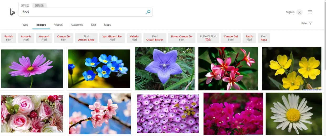 如果我们在搜索引擎里以Fiori作为关键字搜索,能看到各式花的图案: