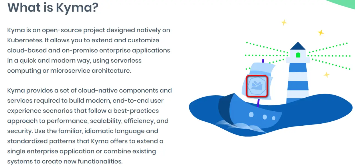 而基于Kubernetes打造而成的SAP Cloud Platform Extension Factory,项目代号为Kyma,或许是为了向Google的Kubernetes致敬,Kyma同样来源于古希腊语,意思是“Wave(浪花)”。