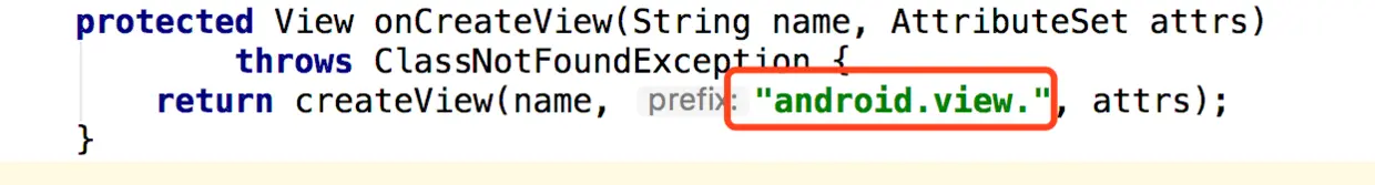 public final View createView(String name, String prefix, AttributeSet attrs)