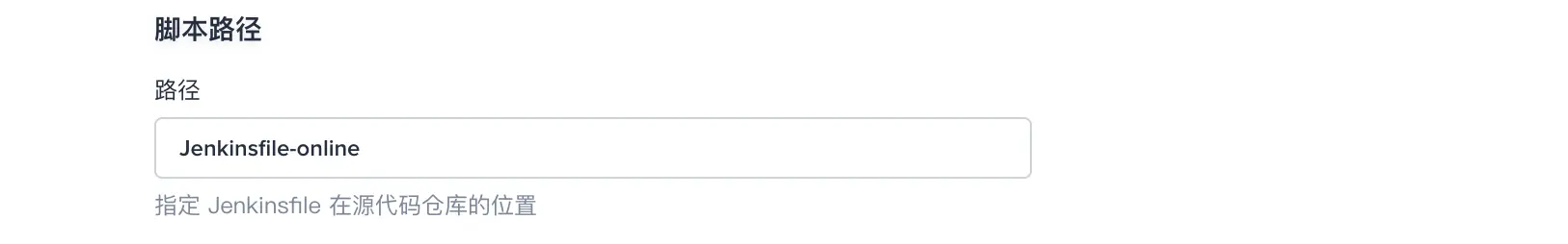 3、默认的 脚本路径 为 Jenkinsfile,请将其修改为 Jenkinsfile-online。