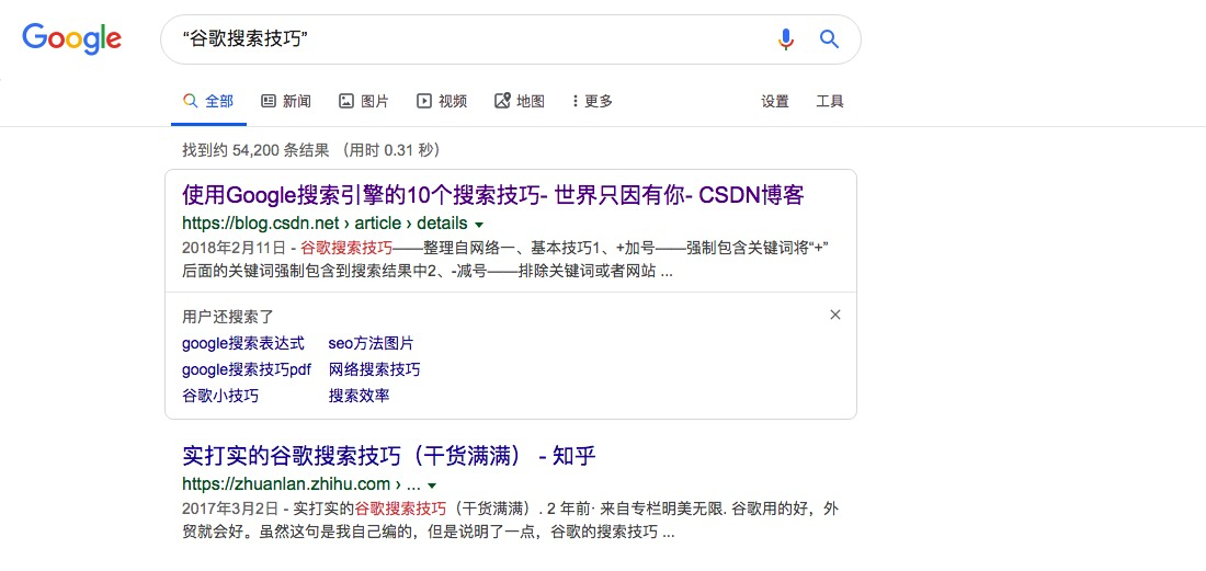 - 精确搜索,就是在你要搜索的词上,加上双引号,这个Google搜索引擎,就会完全的匹配你所要的词。