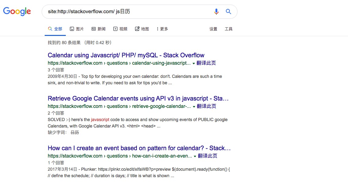 - 做开发的应该都听过 Stackoverflow ,许多在国内找不到答案的在这个网站都可以找到答案,语法:site:stackoverflow.com/