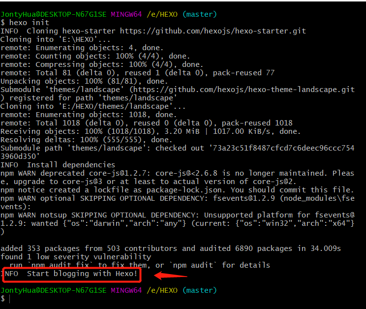 3.2 初始化Hexo
