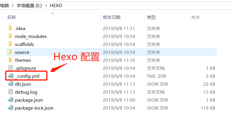 打开 E:\HEXO (你的hexo根目录)下的 _config.yml 配置文件