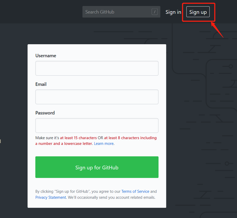 如果你还没有GitHub账户的话,去GitHub官网免费注册一个就好了。 点击sign up