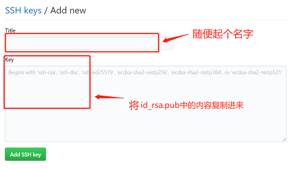 登录GitHub,在Settings里面选择 SSH and GPG keys ,然后点击 New SSH Key