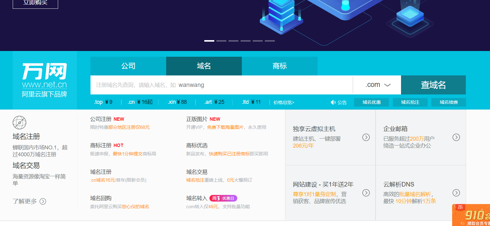 去阿里云购买一个域名