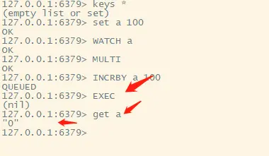 5 监听 WATCH 监听一个或者多个key 如果在事务执行前这个key有改动 那么事务会被打断