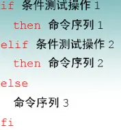 多分支结构:多分支结构由 if、then、else、elif、fi 关键词组成,相当于口语的“如果……那么……如果……那么……”。语法格式如下图: