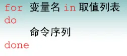 for 循环语句允许脚本一次性读取多个信息,然后逐一对信息进行操作处理。语法格式如下图: