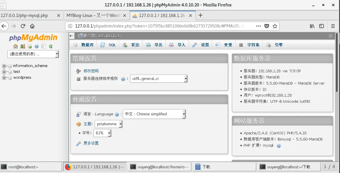 [root@localhost ~]# yum -y install php php-mysql php-fpm httpd MariaDB-server ##安装相关程序及组件