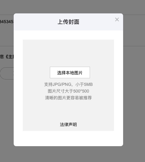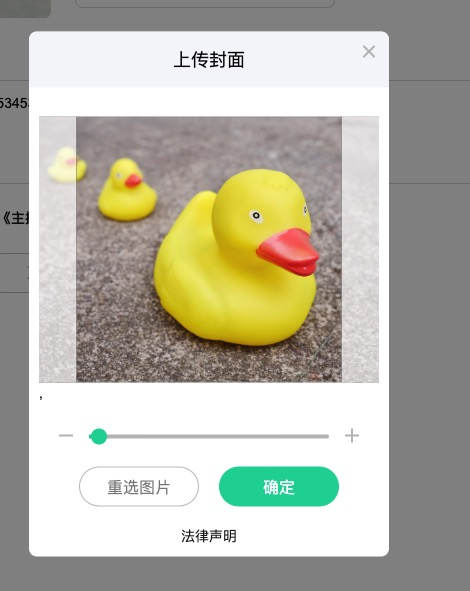 点击添加封面或上传图片时,执行 this.showDialog 方法,会弹出选择图片弹窗浮层,后续一切操作均在弹窗浮层中实现。