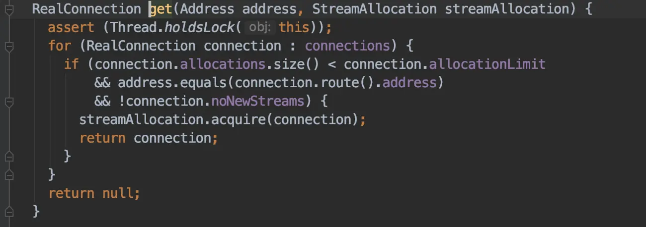 尝试取出连接的时候,会遍历整个队列,找到合适的链接,然后把RealConnect的allocations计数器加1