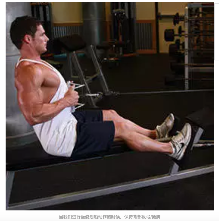 背部的肌肉基本都有一个很大的原则就是需要挺胸/反弓背部,为的就是要将后背肌肉与其他肌肉剥离开来独立训练,更好的收紧肩胛骨以收缩背部肌肉。