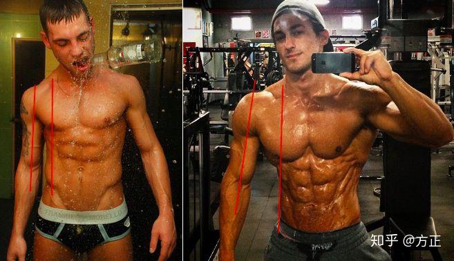 肩胛骨是可以活动的关节,当背部的“肉”多了以后,就会使将肩胛骨往外推,使得肩膀比正常的要宽上3-5 cm,我们看看经典的一张:不知名人士和知名人士塞迪克的肩膀宽度对比
