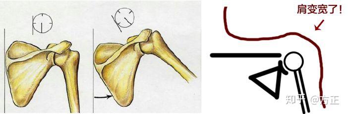 通过我们的背部训练,我们可以将我们的肩胛骨“往外推”,使得我们的肩膀变宽,如下图