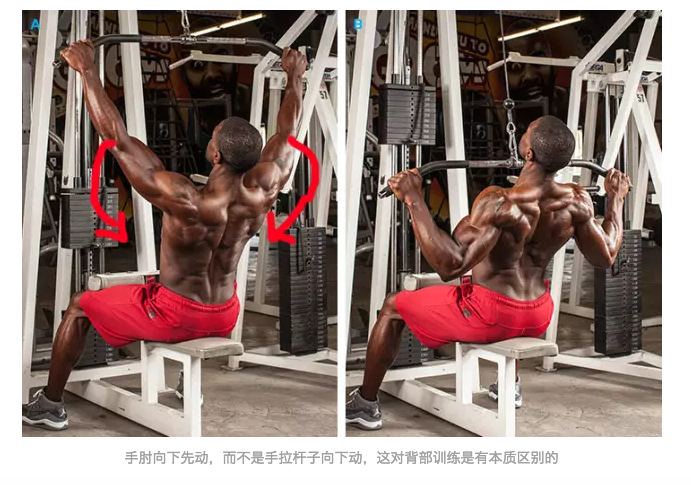 手肘先动永远是背部训练的一个非常非常非常非常非常重要的要素。无论是你划船,下拉,还是其他乱七八糟的背部训练动作,手肘先动是毋庸置疑的。