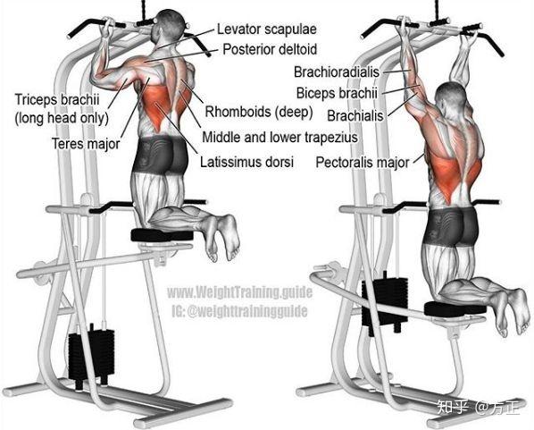 当然,我们也可以使用引体向上来代替这个动作,如果做不起来,也可以使用辅助机来做引体向上