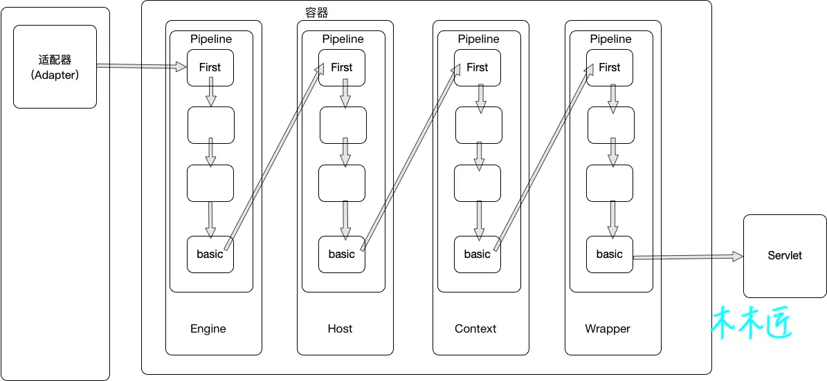 Pieline)-阀门(Valve)模式完成容器的调用的,父容器调用子容器主要通过一个basic的阀门来完成的。 - 最后一个子容器