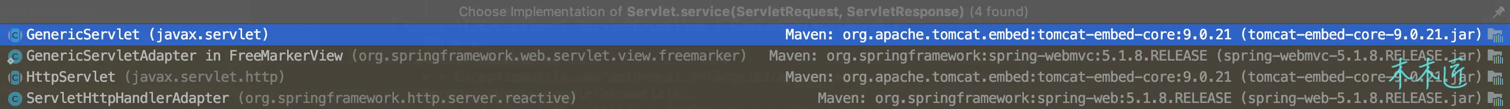 通过源码我们发现,在调用完所有的过滤器(Filter)之后,servlet就开始调用service。我们看看servlet的实现类