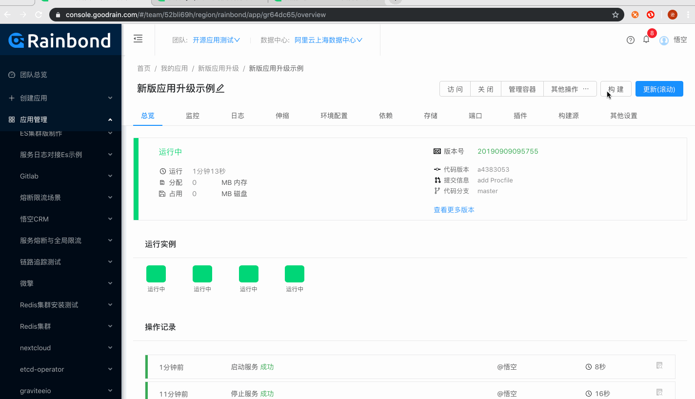 2019年9月08日,Rainbond发布5.1.7版本,本次版本更新带来了全新的服务以及实例的状态控制和UI可视化,服务运行后台事件实时反馈,使开发者更容易掌握服务运行状态。
