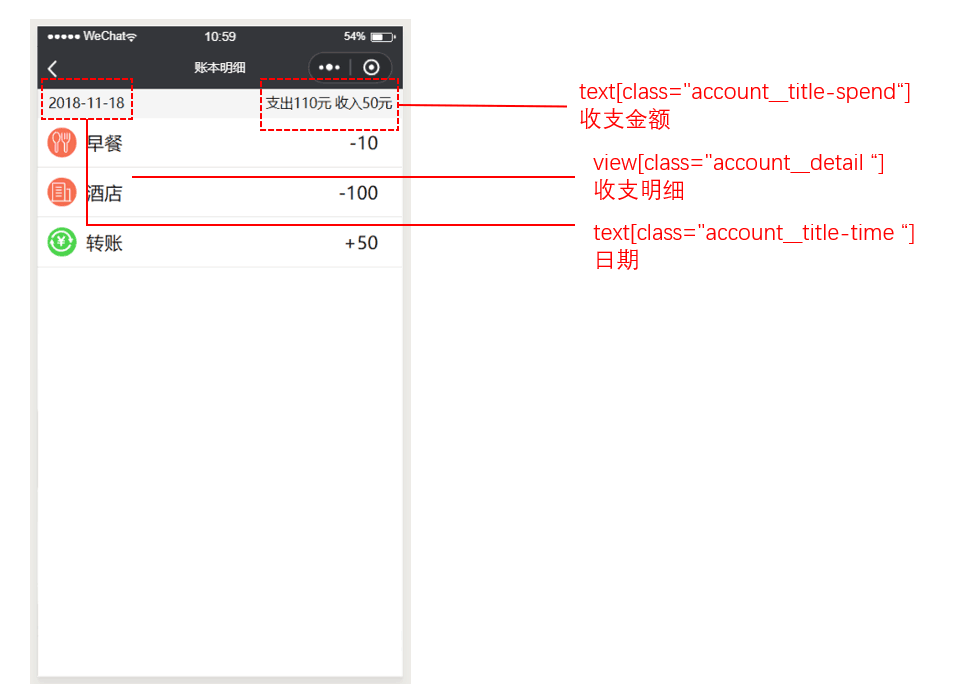 接下来对每个页面的细节进行解构,并完成简单的wxml结构: