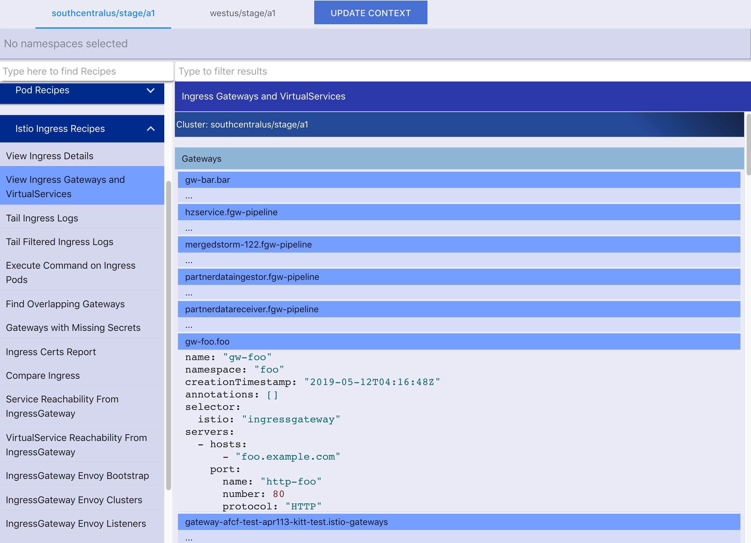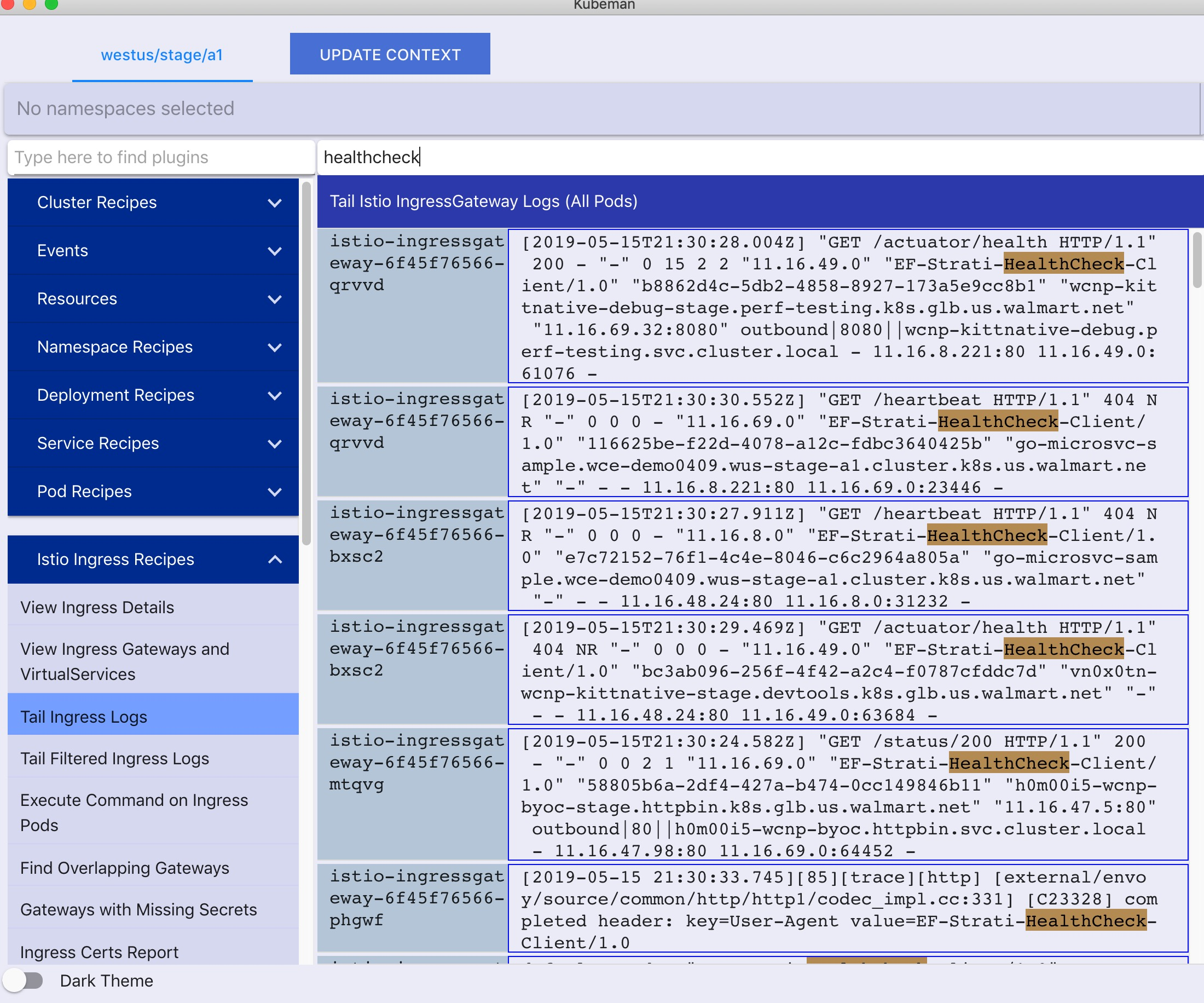 6、某些操作项会做更进一步的筛选,例如 namesapce,service,pod 等。