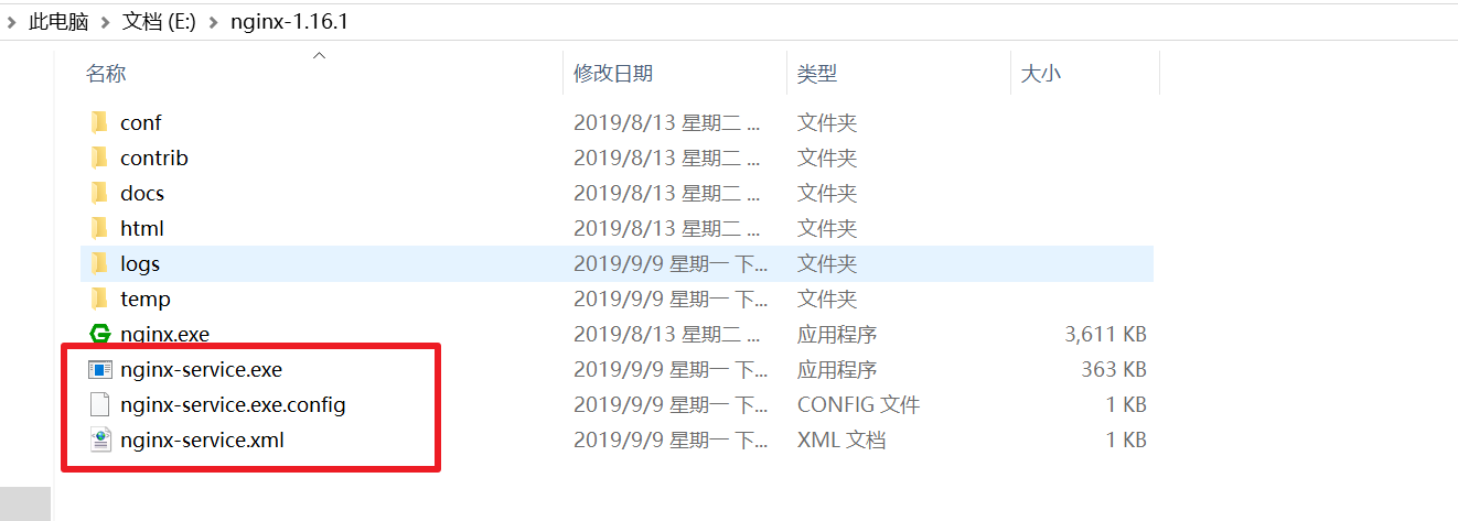 下载后把下载的 winsw-2.3.0-bin.exe 文件放在Nginx安装目录(E:\nginx-1.16.1), 并修改名称为 nginx-service.exe