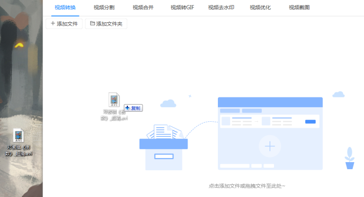 1、首先打开软件,把你准备好的avi格式的视频添加到软件中,添加时可以点击添加文件夹按钮也可以直接把视频拖拽到软件中。