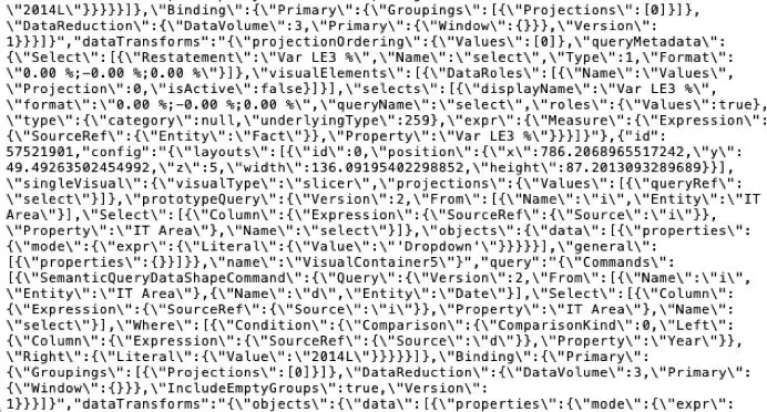 浏览解压文件时,可以看到一个内含“layout”的“Report”的文件夹。这个文件夹包含了有关Dashboard的视觉结构的所有信息,比如: