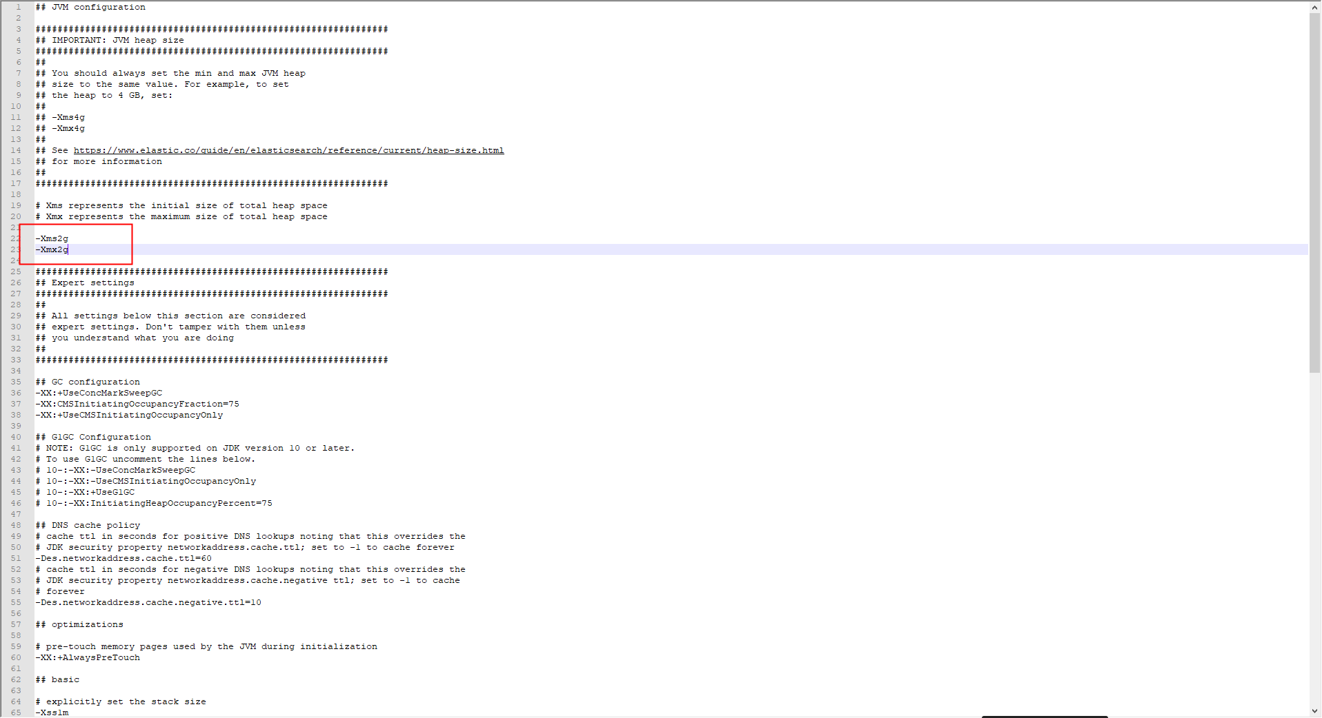 打开jvm.options,修改Java的启动参数为-Xms2g -Xmx2g,也就是扩大了一倍的内存。如下图所示。