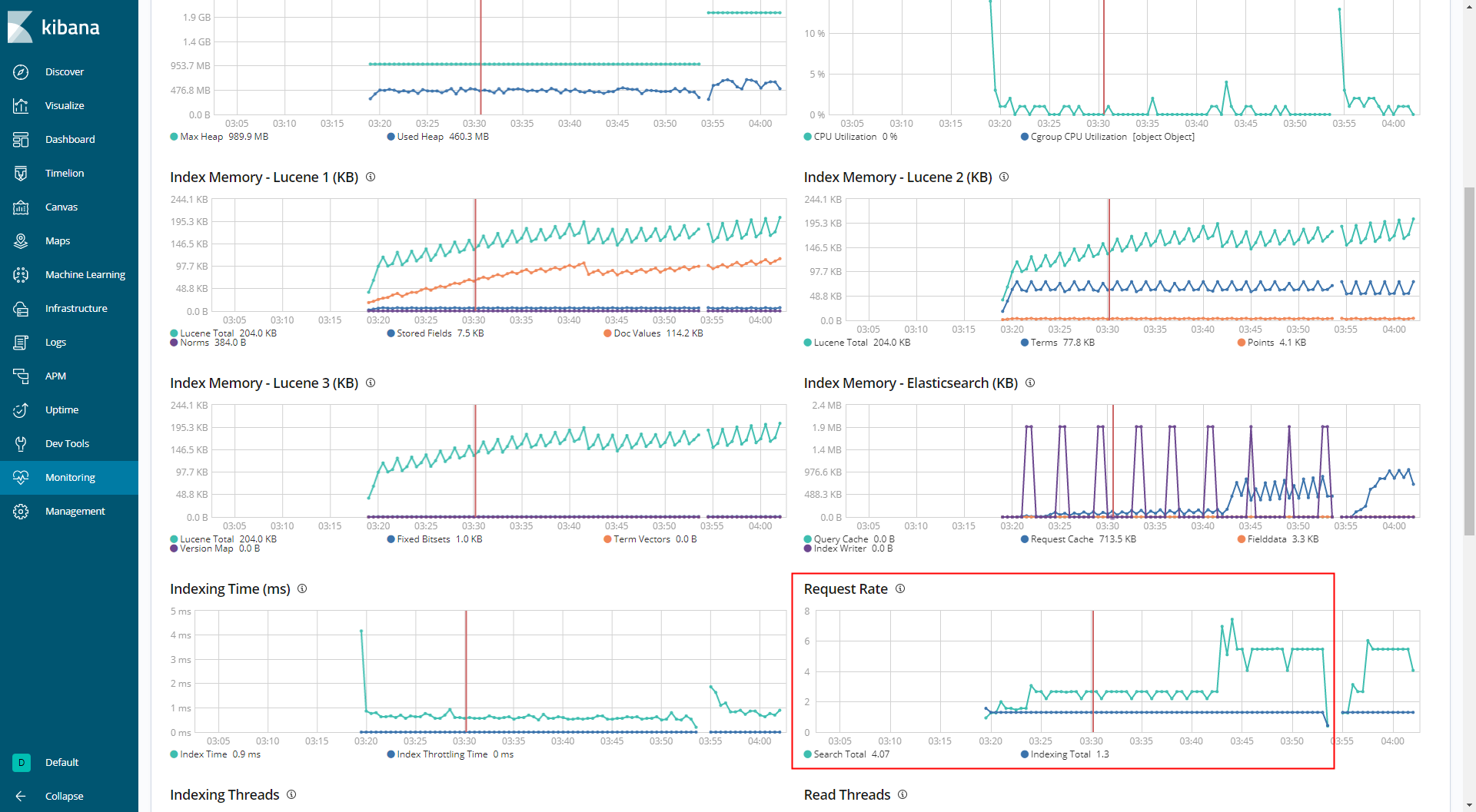 另外用来监控的索引,也会有少量的查询。大概Search Total在2-5左右。Index Total在1左右。
