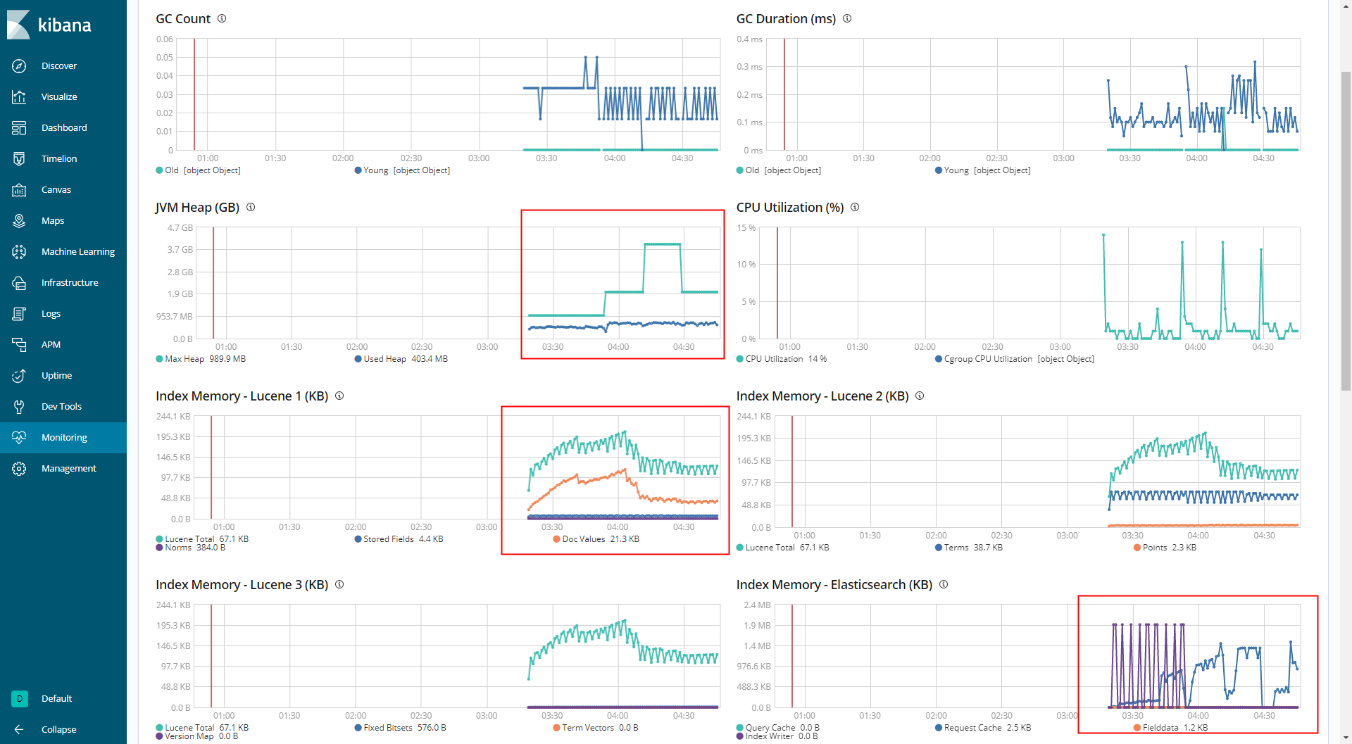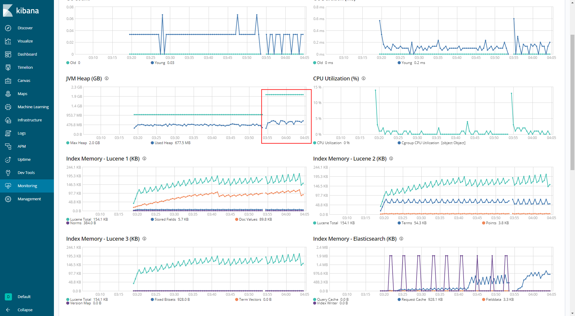 好像是JVM的内存大小和Doc Values有一定的关系?随着内存的加大Doc Values好像是趋向去稳定?