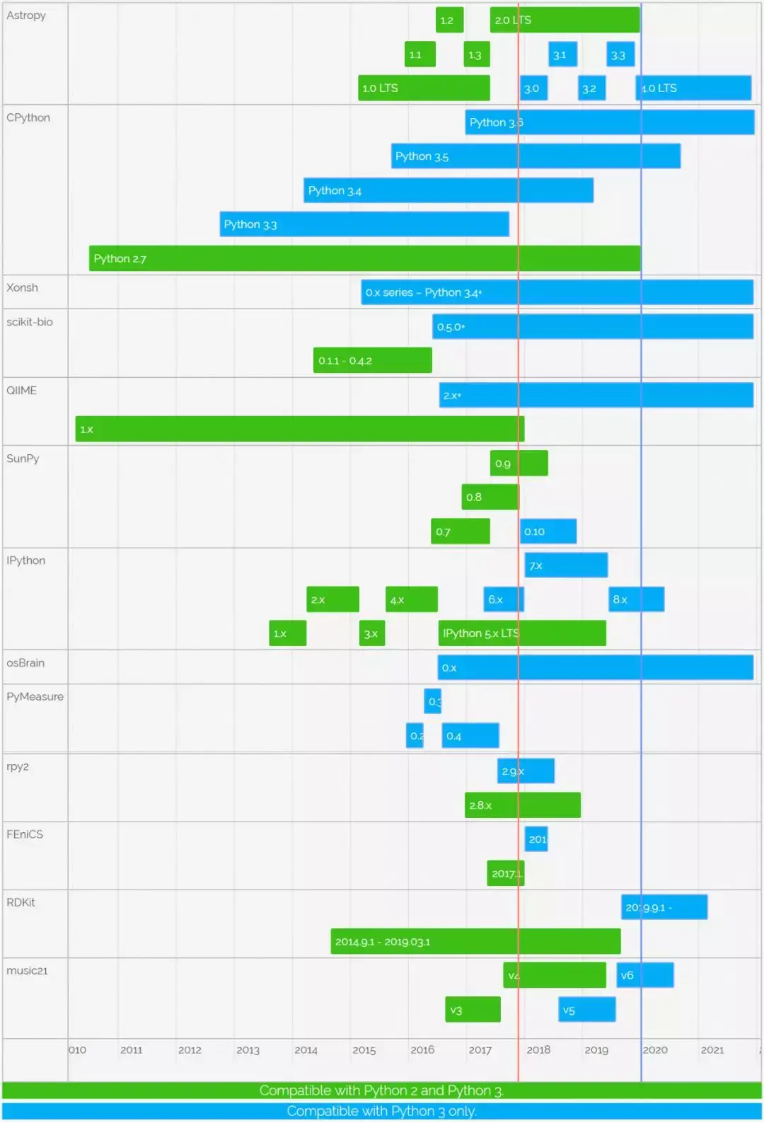 2017 年,机器之心曾报道过将会放弃 Python2 的开源工具。目前,这一列表又长了很多。